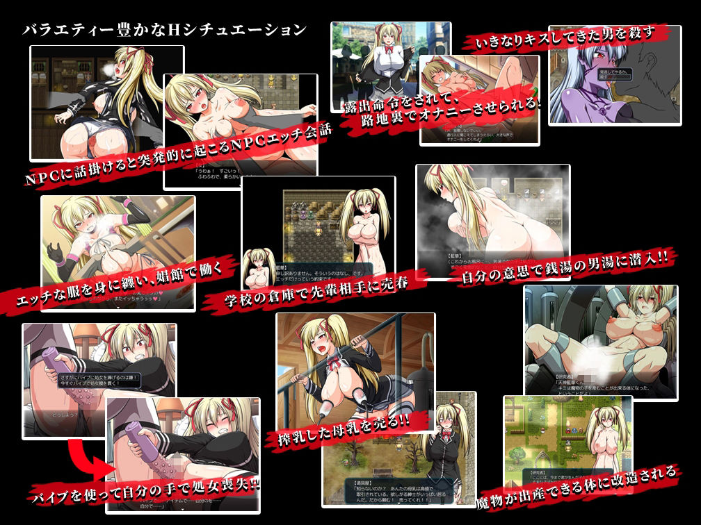 本編をクリアすると、本編終了後の世界をプレイすることが可能です。こちらは終わりのないものとなっており、ひたすら街の人とエッチなことをするも良し、倒せないモンスター相手に犯●れることを楽しむも良し、モンスターを孕んだ状態で街を歩き回るも良しといったモードです。
